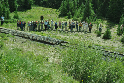 Our passengers getting off the train and I was at the east end of the group making sure no one went down the tracks until the train finished reversing. The conductor and I would lead the passengers to the upper photo locations.