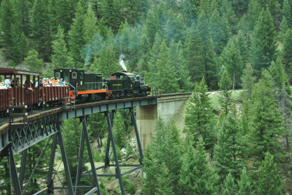 The train is heading to Devil's Gate Viaduct. Now let us watch our steam train cross it.