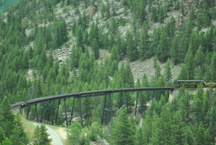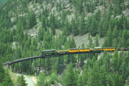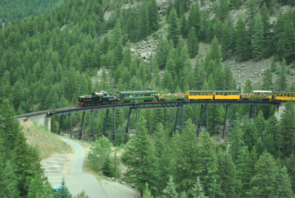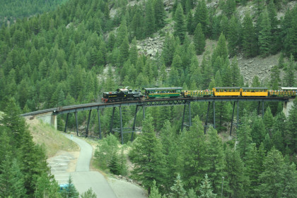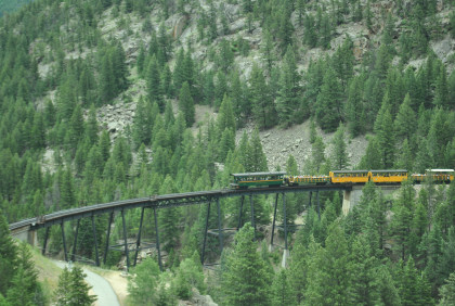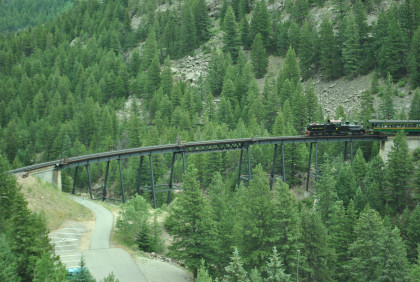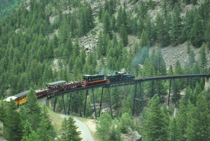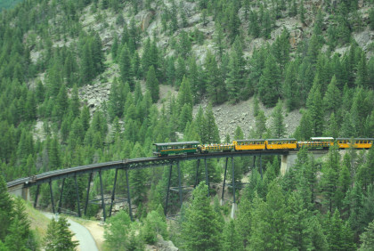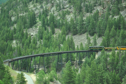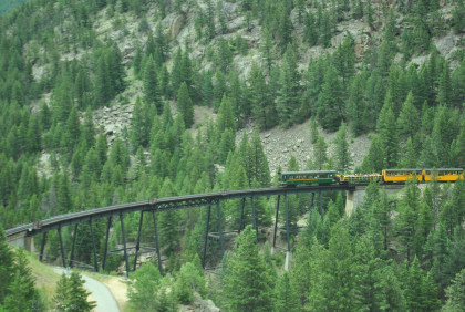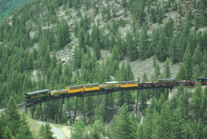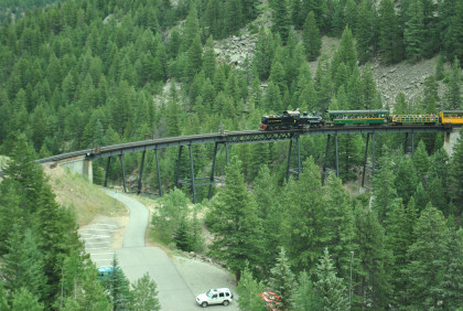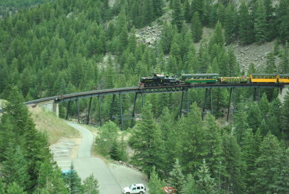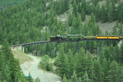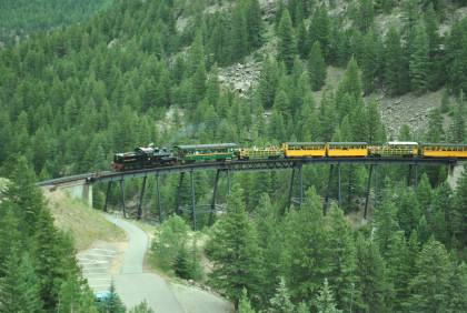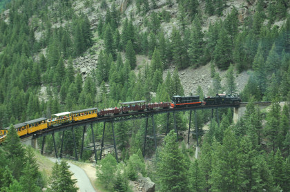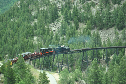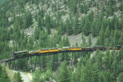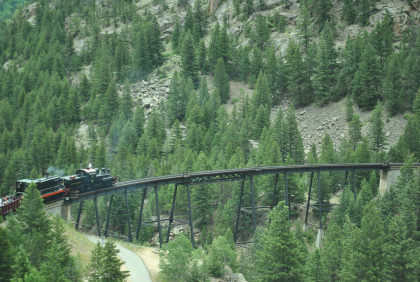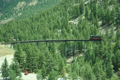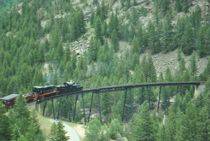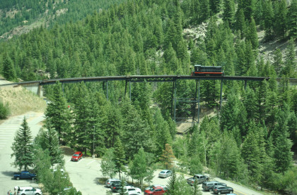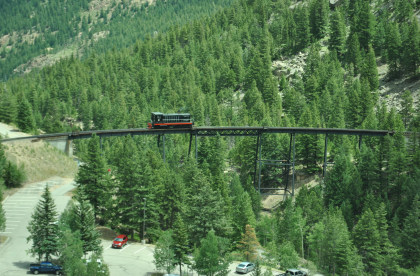 The steam train has completed the Georgetown Loop. Now let us watch it come back up the grade and over Devil's Gate Viaduct.