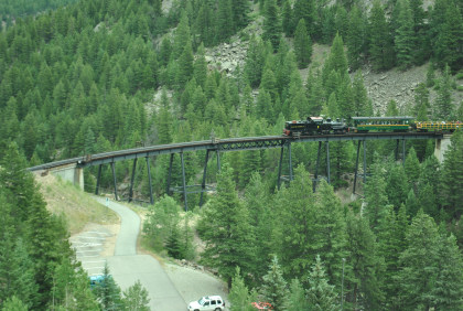 The steam engine ran around our train. The diesel then went by the train and would be used as a helper on our return trip. Now we will reverse under Devil's Gate Viaduct.