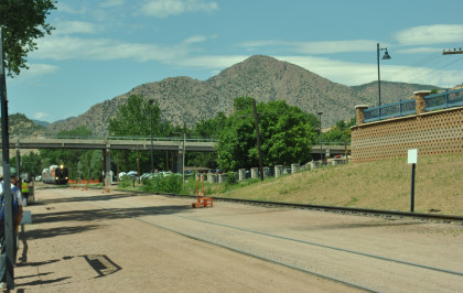On April 19, 1878, a construction crew from the Santa Fe's proxy Canon City and San Juan Railroad, hastily assembled from sympathetic local citizens, began grading for a railroad line just west of Canon City in the mouth of the gorge. The Rio Grande, whose track ended of a mile from downtown Canon City, raced crews to the same area, but they were blocked by Santa Fe graders in the narrow canyon. By a few hours they had lost the first round in what became a two-year struggle between the two railroads that would be known as the Royal Gorge War. Temporary injunctions forbidding further construction were filed in the Colorado courts and soon moved to the federal courts, each company claiming prior right to use of the gorge.