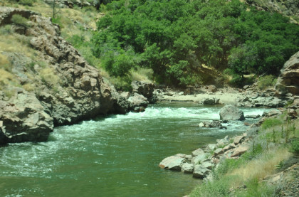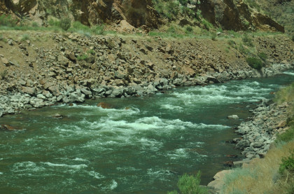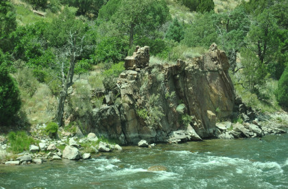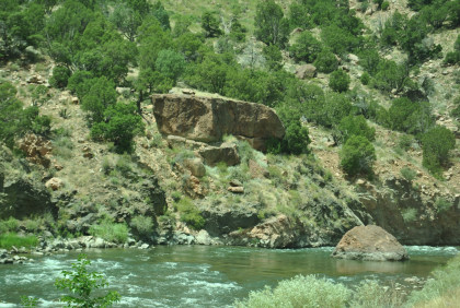 Large pieces of rock had fallen from the cliffs into the Arkansas River.