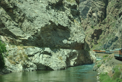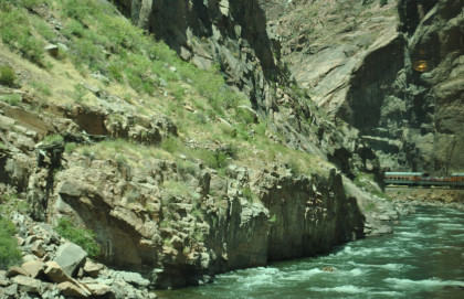 The train is now closer to the Royal Gorge Suspension Bridge and at the deepest part of the canyon.