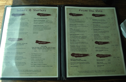The Royal Gorge Route menu. I made sure Elizabeth was re-hydrated and then finally the train departed Canon City.