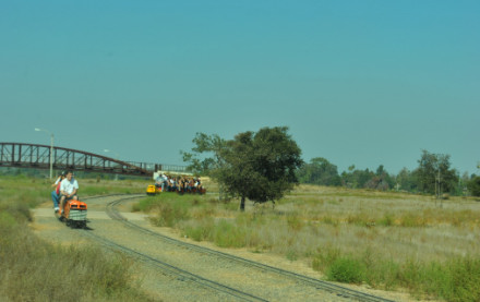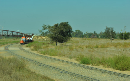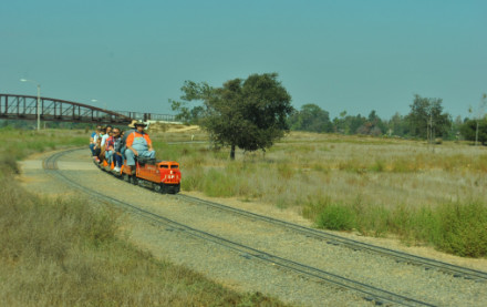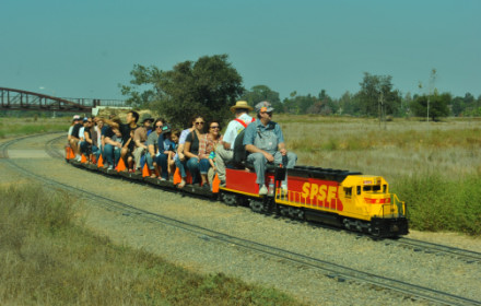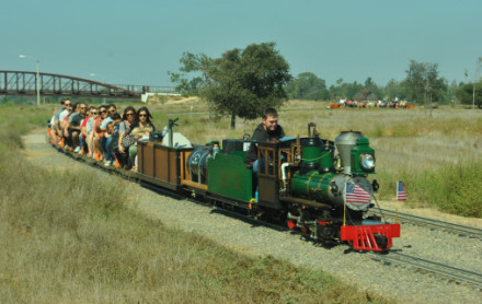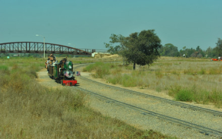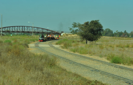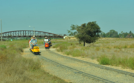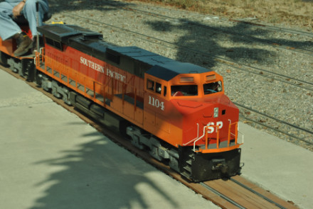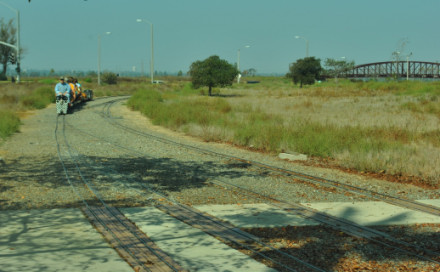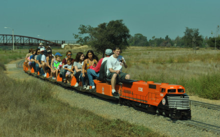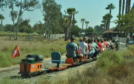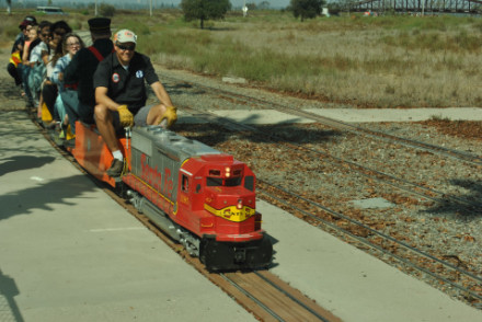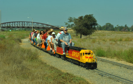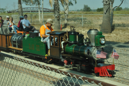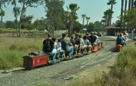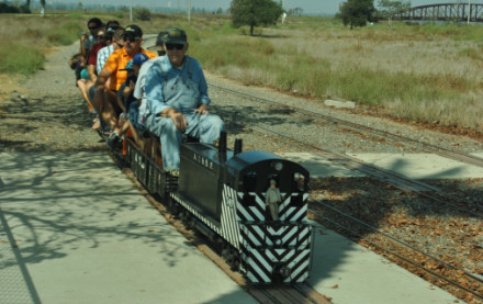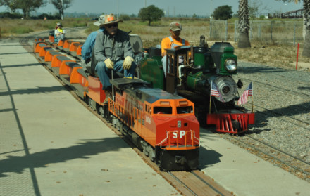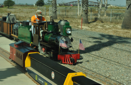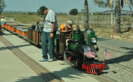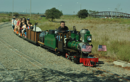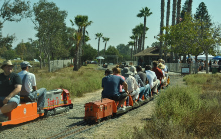 On March 19, 1991, with construction of the First Phase loop completed, OCME held its Golden Spike Ceremony, thus inaugurating operations on twenty four hundred feet of track, including the ninety foot Hank Hornsvelt trestle. In attendance were Mary Hornbuckel, Mayor of Costa Mesa and Keith VanHolt, Director of Parks and Recreation.
