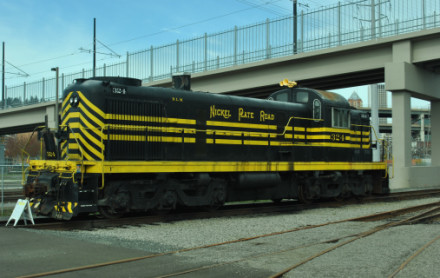 Portland Streetcars above Nickel Plate Road RSD-5 324.