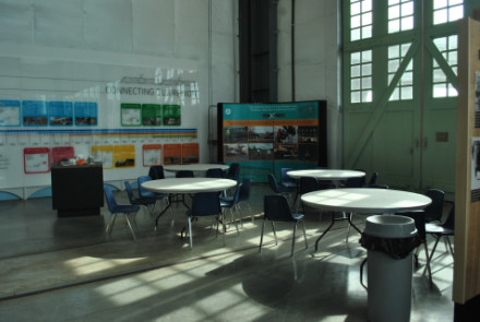 The museum site is in Southeast Portland, at 2250 S.E. Water Avenue, adjacent to the Oregon Museum of Science and Industry and to Union Pacific's north - south main line. The center is open Thursday through Sunday, from 1:OO PM to 5:00 PM. Public transit service is provided by TriMet's MAX Orange Line light rail, TriMet bus routes 9 and 17, and the Portland Streetcar system's Loop Service. The Portland Streetcar system opened its CL Line on the same day as the museum, September 22, 2012, terminating one block from the ORHC. This provided the only transit service to the center until September 2015, when the opening of the nearby Tilikum Crossing and the Orange Line added light rail and bus service to the area, and the Portland Streetcar was has their Loop Service (clockwise A Loop and counterclockwise B Loop) now servivd this unique facility. The nearest MAX, bus and streetcar stops are one block west of the center.