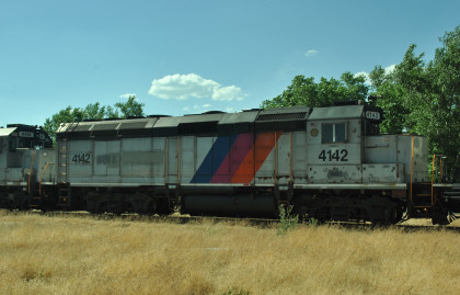 San Luis and Rio Grande GP40PH2 4142, ex. New Jersey Transit 4142, nee Milwaukee Road GP40 2055 built by Electro-Motive Division in 1968. We then drove to the station.