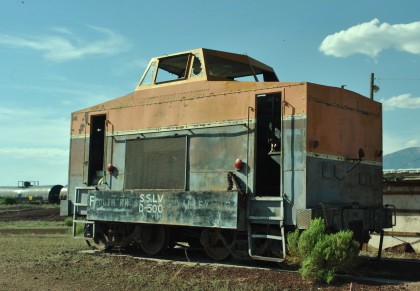 San Luis Southern D-500 built by the railroad from Denver and Rio Grande Western steam locomotive tender frame 964 which they had purchased in 1950 and after an abortive attempt at building a locomotive on the tender frame, a successful machine was completed in 1955. It rolled on standard locomotive tender trucks which were powered by a sprocket and chain drive. Power was from an International Harvester, 1091 cubic inch, UD24 diesel engine. The power went through a Caterpillar hydraulic transmission, which in turn powered an old Euclid truck axle, which transmitted power through sprockets and chains to the axles. The odd locomotive, which resembled a caboose, was built in a cupola style for visibility and to ease the installation of the prime mover.