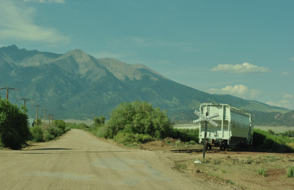 A view looking at the La Veta valley with interesting geology. From here we drove to Blanca for some Ghost Railroading!