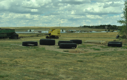 Tires in a children's play area.