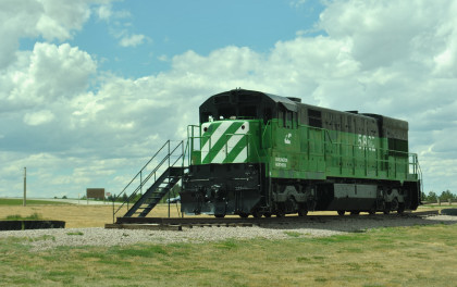 At Mine Park, Burlington Northern U30C 5802, nee Burlington Northern 5032, built by General Electric in 1972, is on display.
