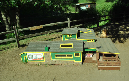 1948 Model of filling station (gas station)A stroke of the pen may have been more devastating to Tiny Town than these floods and fires. On January 28, 1948, plans were approved to reroute Highway 285 from in front of Tiny Town. This took it from the everyday view of those who used 285.
