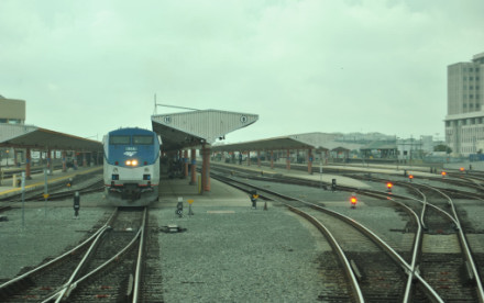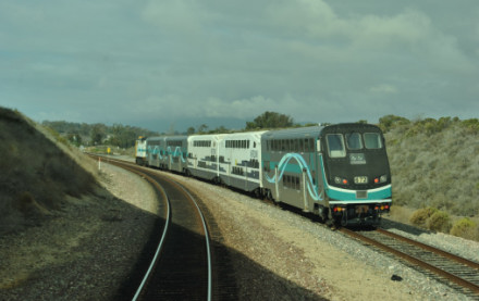 Pacific Surfliner 1561, a low-level trainset arrived with Robin and I boarding the first coach. I bought some San Diego Trolley Day Passes for only five dollars from the cafe attendant and the train made its way to LAUPT where we arrived on time and I was off for a better picture of the train which brought me here.
