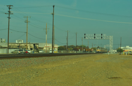 Amtrak San Joaquin train 702 headed next for Hanford and later Bakersfield. We returned to CA Highway 99 and went though Madera before I had to pull off for a minute.