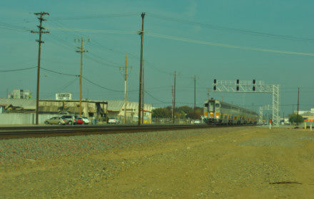 Union Pacific 3606 West came through Kingsburg and by the station. From here we drove to Fresno to Paralell Avenue for a pair of Amtrak trains.