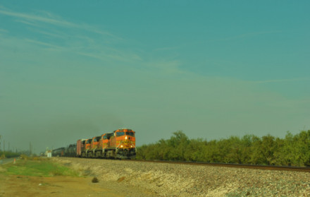 BNSF 6630 East at the Highline Canal. We continued north to Denair where I filled the car with petrol then proceeded north.