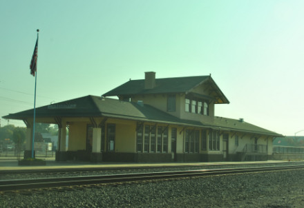 Heading North 11/11/2016I woke up at 4:00 AM and was on the road by 4:45 AM up Interstate 5 north to US 101 and pulled into the Denny's lot by 5:20 AM. Chris showed up at 5:45 AM and after we loaded the car, drove straight north to Tulare where we made a stop at a UPS Store so Chris could get his employees' checks to them by noon tomorrow. From here it was straight to Kingsburg and our first official stop of the morning at the restored station.