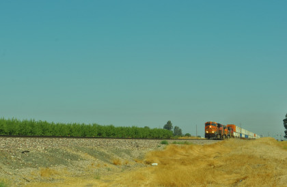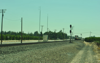 8/12/2016 This day after a McDonald's breakfast, I drove California 198 to California 41 to Fresno and a brief stop, then California 99 to Road 20 1/2, taking my mother on the way we used to go to Winterail when that event was in Stockton. We caught our first train of the day south of LeGrand.