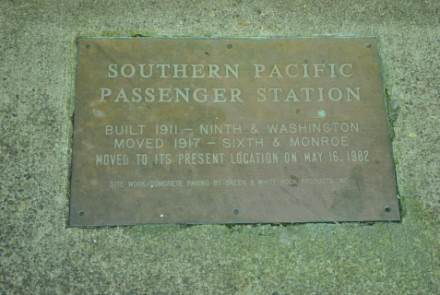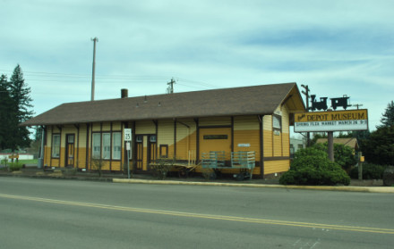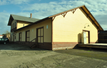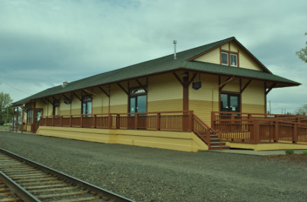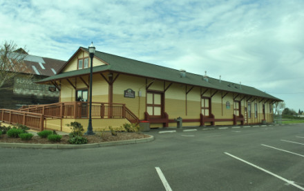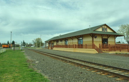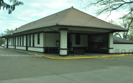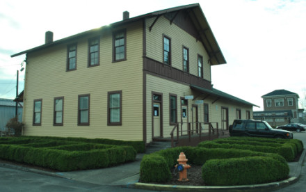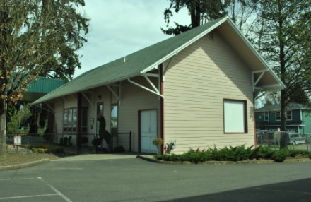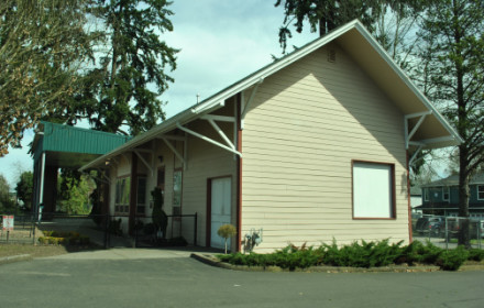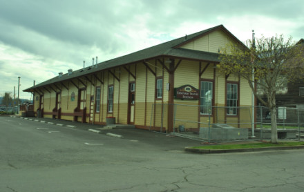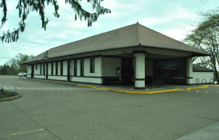 The Southern Pacific Corvallis station built in 1913 which used to be at 6th and Monroe Street before being moved here on May 16, 1982.