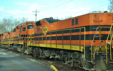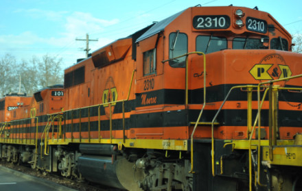 Portland & Western Toledo Hauler had Portland & Western GP40P-2 3001 (ex. Norfolk Southern 1377, nee Norfolk and Western GP40 1377, built by Electro-Motive Division in 1967), RP-4ED 101 (ex. Norfolk Southern 9728, nee Norfolk and Western GP18 945, built by Electro-Motive Division in 1961) GP39-2 2310 (nee Santa Fe 3609 built by Electro-Motive Division in 1964), RP-4ED 102 (ex. Norfolk Southern 9738, nee Norfolk and Western GP18 956 built by Electro-Motive Division in 1961) and GP40P-2 3002 (ex. Norfolk Southern 1382; nee Norfolk and Western GP40 1382, built by Electro-Motive Division in 1967).