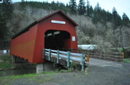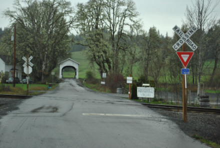 The Mt. Angel Southern Pacific station built in 1882. The clock tower was added in 1976 to house a clock from Salem City Hall. From here we headed to the Gallon Covered Bridge.
