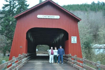 In search of Covered Bridges 3/19/2016Chris and I got up and picked up Bob and Elizabeth at the Rodeway Inn before stopping at McDonald's for Hot Cakes and sausage for me. We drove out west on US Highway 20 to the Chitwood Covered Bridge.