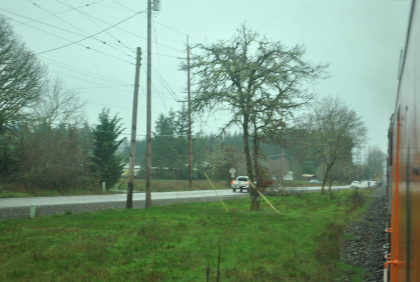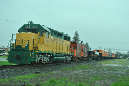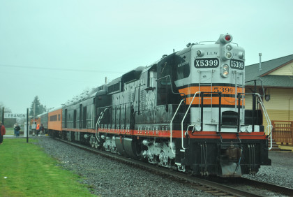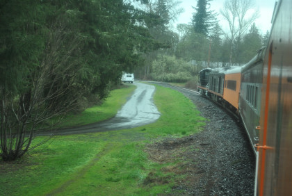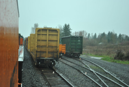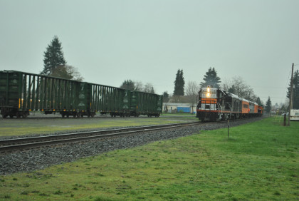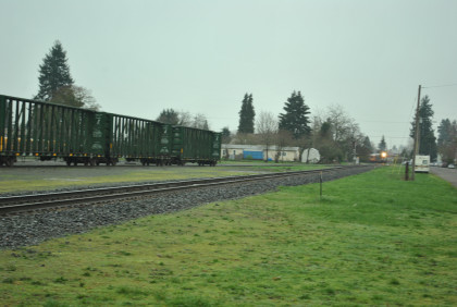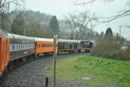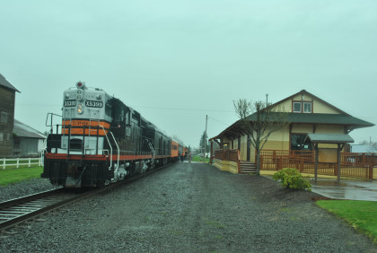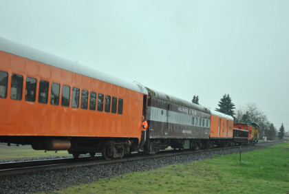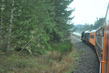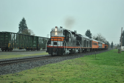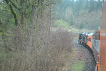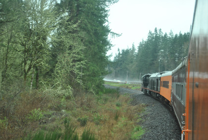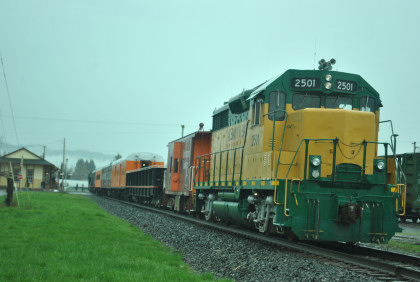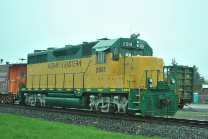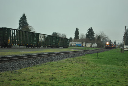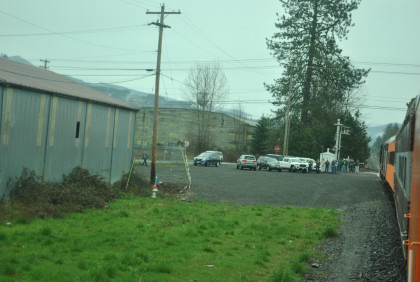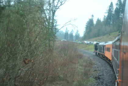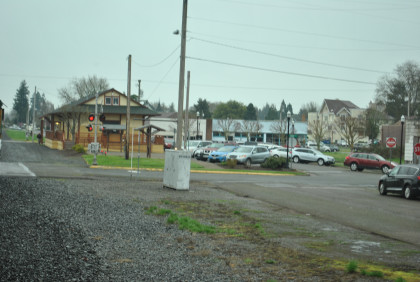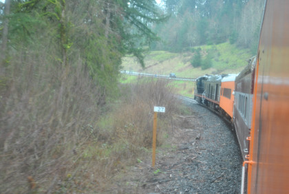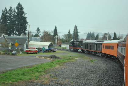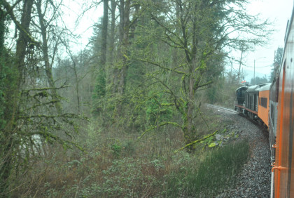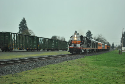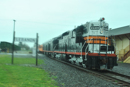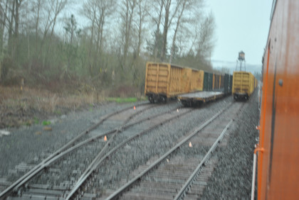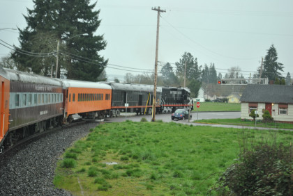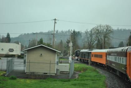 The train finished the first curve and then crossed both branches of Highway 20 before it came to the junction with the line that goes to Mill City that is still owned by the Union Pacific, but operated by the Albany and Eastern Railroad.