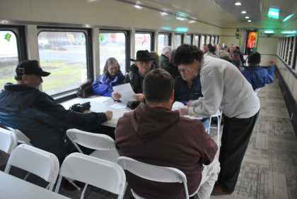 The pre-dawn light pictures of the Lebanon Southern Pacific station. I then waited in the car mainly for warmth until cars arrived, then proceeded to go outside and introduce myself to each driver or in some cases, parties of passengers, to the trip. Several people immediately thanked me for running this trip. As more people came, I became busier but soon some of my rare mileage friends showed up and other riders who still needed to pay me for tickets. Several people then would walk up and ask if I had any tickets left, and I said yes, they paid me and I gave them tickets so I had more passengers for the excursion.