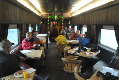 The interiors of each of the cars the passengers were riding in. If you wondered what the consist of this train was, it is as follows: SP GP9R 5399, WPRX 1402 generator car, GN 1099 coach, now table car, WPRX 1241 GN Ranch Car "Running Crane Lake", RFRX baggage car 1003, former UP 5742, AERC 1802 open car, SP caboose 4716, AERC GP35 2501.