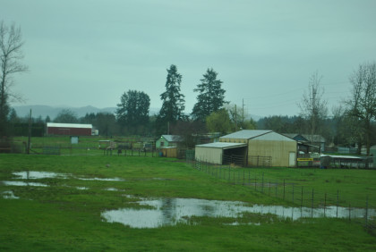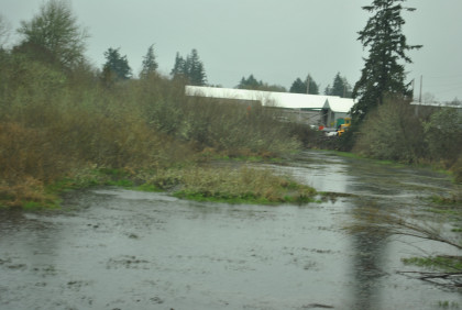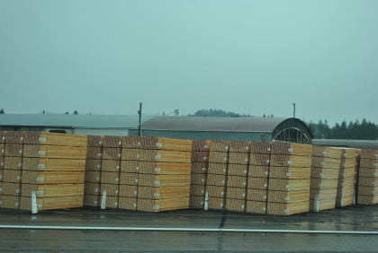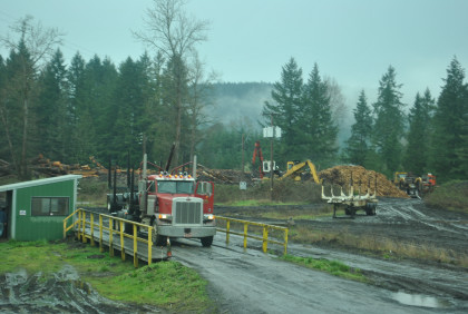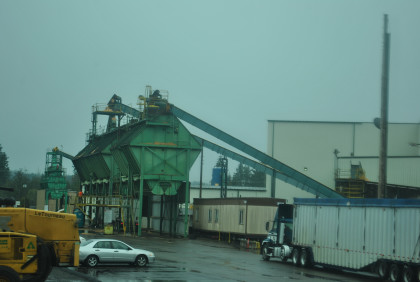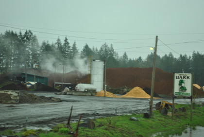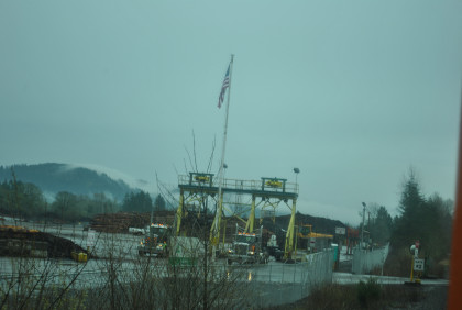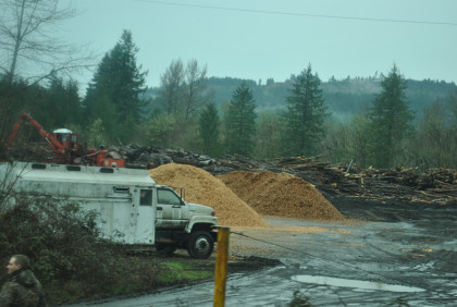 This industry makes wood chips as you can see the stacks in the lower picture ready to be picked up, although today it will be soggy wood chips.