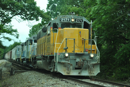 Southern caboose X347, built by Gantt Manufacturing in the 1970's, on display in Rockwood. From here, I took US 70 to Crab Orchard where, at a grade crossing east of the Lhoist plant, I found Steve Barry and Mike Burkhart.