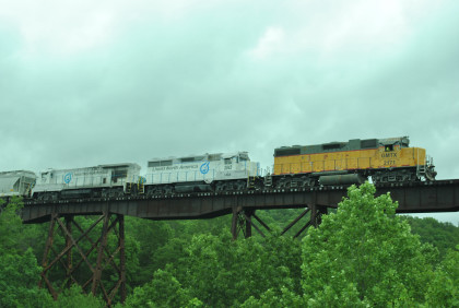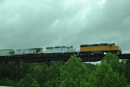 The Lhoist train at Price Loop. I then drove along Highway 70 to the Piney Creek bridge and beat the train there by only two minutes as I hobbled to the bridge.
