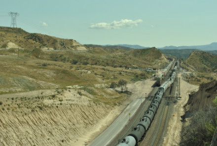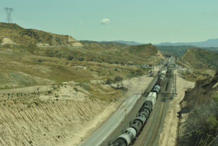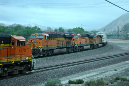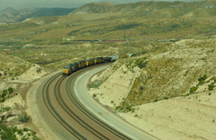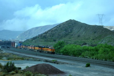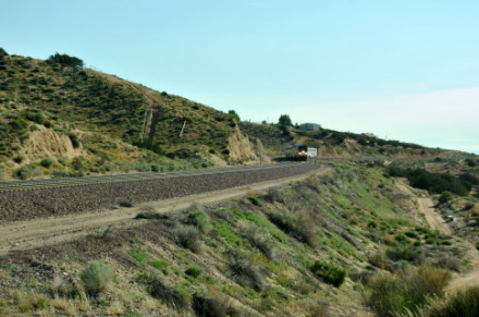 Bill Compton wanted to go to Cajon Pass and I wanted to see how construction was progressing on California Highway 138 so we decided on Saturday and he picked me up at 6:30 AM. We did not have to go far for our first train of the day.