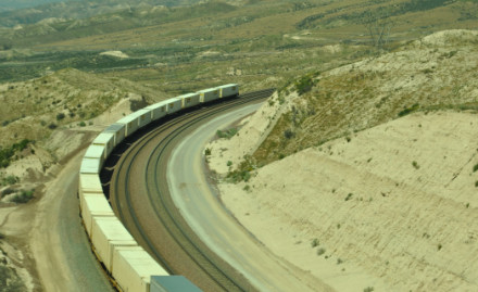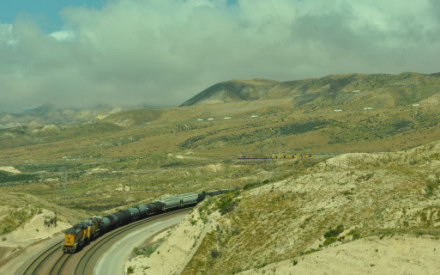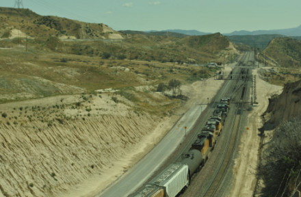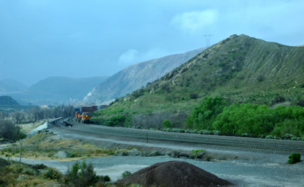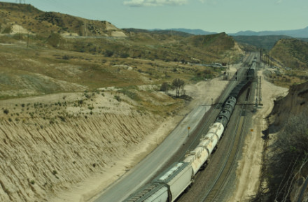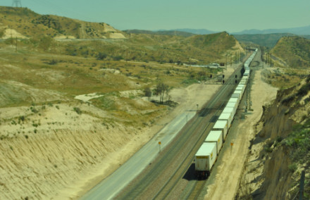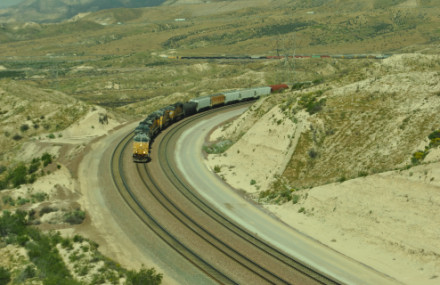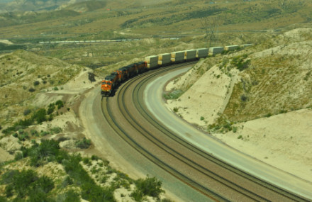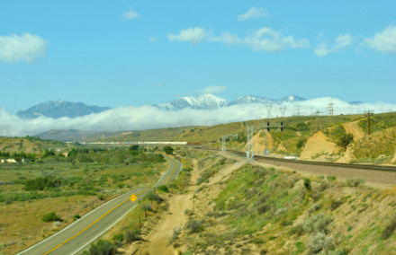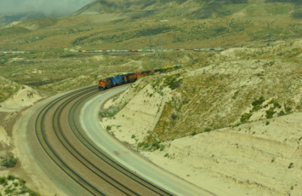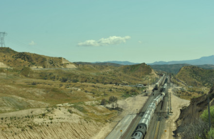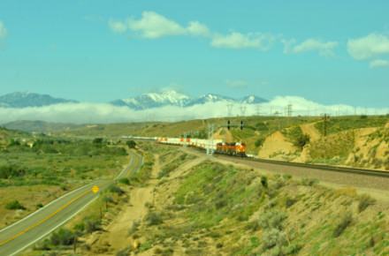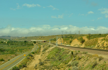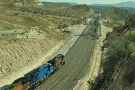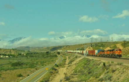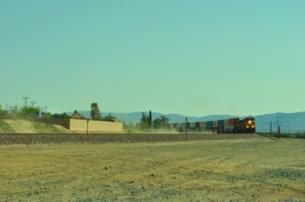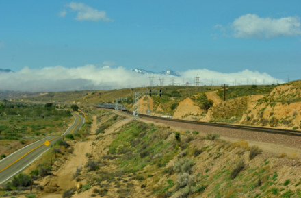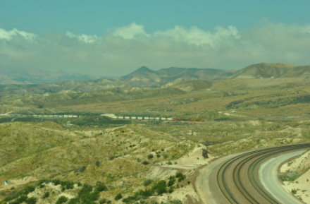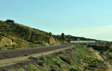 Pacific Surfliner 761 came north through Santa Ana before we headed to the freeway. We went to West Colton Yard then cut through San Bernardino and saw the platform expansion construction at the San Bernardino station then drove north to Cajon Boulevard which you can now take all the way to Cajon. As we headed to Blu Cut, we caught up to the second train of the morning; the first one we passed along Cajon Boulevard.