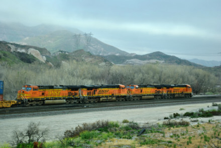BNSF 6015 East. We stopped at McDonald's for lunch then drove to Blu Cut to eat and later, drove to Riverside then followed the former Union Pacific line to Pomona where we found another train.