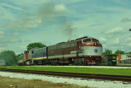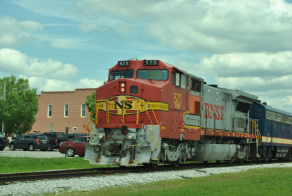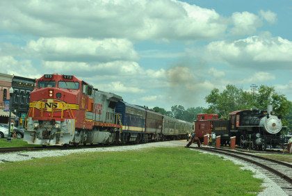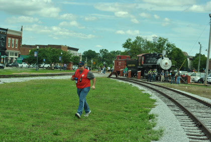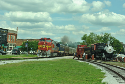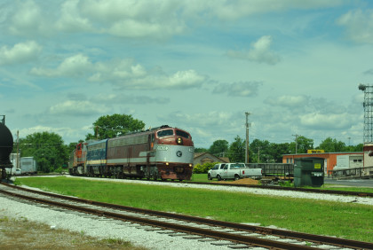 Photo runby number two was the train arriving back into Cookeville after the power was run around the train. When the passengers boarded, they all went to the wrong cars because they thought the train had been turned, although it had not.
