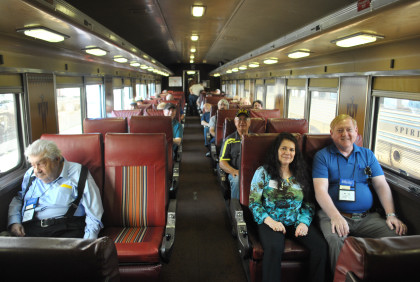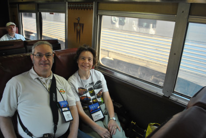 Bob and Elizabeth in the former Santa Fe car TCRX 4739 making their first trip on this railroad.