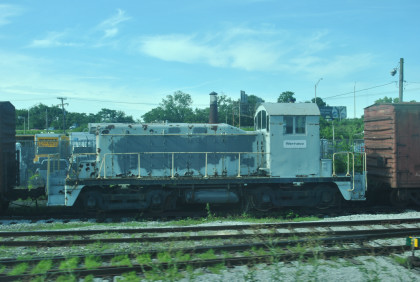 Westvaco SW1 4800, built by Electro-Motive Corportion in 1939 as Illinois Central 9014. This switcher worked anonymously in switching yards across the Illinois Central's vast system, eventually being renumbered to 600 in 1951. Retired and sold off in May 1969, it was picked up by the Rock Island Line less than a year later and switched cars for them until the company's bankruptcy in 1980. A new home would be found at the West Virginia Pulp and Paper Company (or Westvaco), switching cars containing paper products at any one of their facilities. This engine has been stored at TCRM since at least 2004.