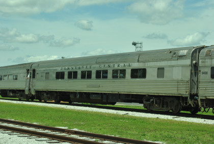 Tennesee Central wooden observation car 102 "Palm Beach" built by Pullman in 1916 and scrapped in 2018. I was then led out to the gate and took my location at the front of the line for boarding. About twenty minutes later, the gate was opened and I led the way onto the train, sitting in the former Santa Fe car. The consist of our special NRHS Tennessee Central train was Tennessee Central E8A 6902, Louisville and Nashville F7B 715, Nashville and Eastern B40-8W 573, TCRX coach 4717, TCRX coach 4739, TCRX dome coach 9400, TCRX coach 3119, TCRX baggage car 1266 and TCRX HEP car "Silver Chest" formerly Amtrak.