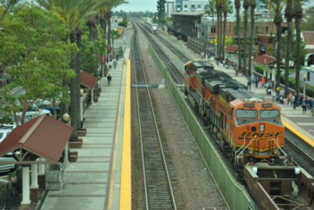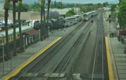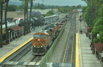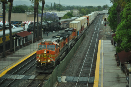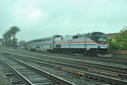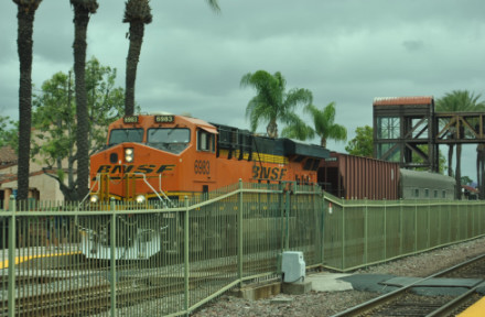 BNSF 6893 West with BNSF 90, which was built as a 10-6 sleeper but went through a total revamp when it became a Track Geometry car. After that unique train went through, Metrolink 662 arrived and picked us up for Oceanside. Today we went to CP Serra and waited for both Metrolink 663 and Pacific Surfliner 573. From there it was straight to Oceanside where Robin went to Burger King to get us lunch while I stayed about to watch our stuff. While here, both Pacific Surfliners 777 and 572 arrived and departed. Now aboard Metrolink 665, we had the straight shot trip back to Santa Ana and we detrained two very happy railfans, and I had passed my 1,489,000th rail mile just short of Oceanside on my second trip south today.