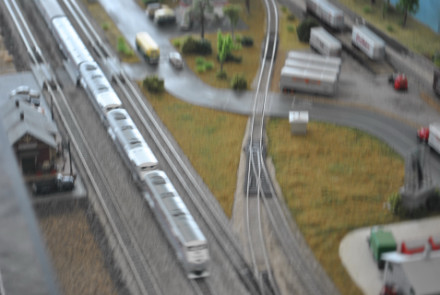 Orange County Modular Railroaders, HO-gauge layout. I next went to the Amtrak car display and walked through the two passenger cars they had here then went back up on the pedestrain bridge to watch some real trains.