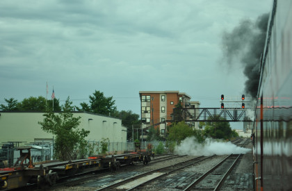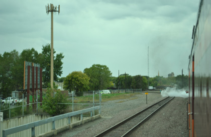 Reversing to beyond the signal bridge, where we waited to get a red-over-green signal. I called my friend Elizabeth Alkire in Lynnwood, Washington, to let her hear some steam action.