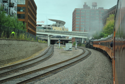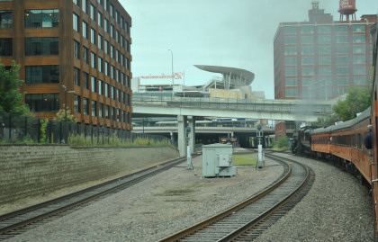 Northstar Commuter Train Sunday baseball train at the Target Field station. The crew lined us back down the southest leg of the Minneapolis Junction wye, but that would not work so we reversed up the southest leg and took the northwest leg to the BNSF mainline before we pulled back into Minneapolis Junction. I returned to the car and drove to Interstate 35 West then took Hiawatha Boulevard south in bumper-to-bumper traffic, so it took a lot longer to get back to near Motel 6. I found a Subway and bought dinner to take back to my room then worked on this story before calling it a night. It had been a great trip with Milwaukee Road 261.