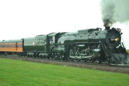 Milwaukee Road 261Milwaukee Road 261 is a 4-8-4 "Northern" type steam locomotive built by the American Locomotive Company in Schenectady, New York in July 1944 for the Chicago, Milwaukee, St. Paul & Pacific Railroad. The coal-fired locomotive, weighing 460,000 pounds, is rated at 4,500 hp and a maximum speed of 100 mph and had a three-chime whistle and airhorn mounted on it. It was used for heavy mainline freight work until being retired by the railroad in 1954. Instead of being cut up for scrap, 261 was preserved and donated to the National Railroad Museum in Green Bay, Wisconsin in 1958. Today the locomotive is owned, operated and maintained by Minneapolis-based nonprofit organization Friends of the 261, which runs seasonal excursion trains. Restored in 1993, it has logged more than 25,000 miles under its own power since that time.