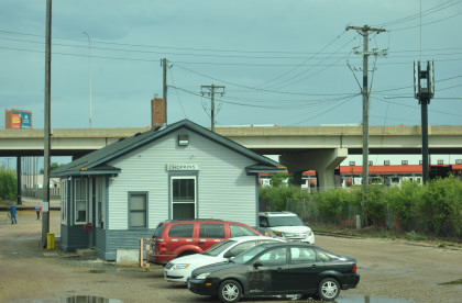 10/01/2017 I was up at 5:30 AM and knowing Interstate 35 West was closed, I left and took Hiawatha Boulevard into Minneapolis, crossing the Mississippi River then made my way to University Boulevard and a MacDonald's to get hot cakes and sausage to go. I then drove over to Minneapolis Junction and parked by the home shed of Milwaukee Road 261 and ate my breakfast.