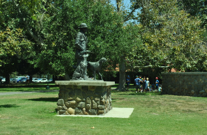 Statue of James Irvine and his hunting dogs.