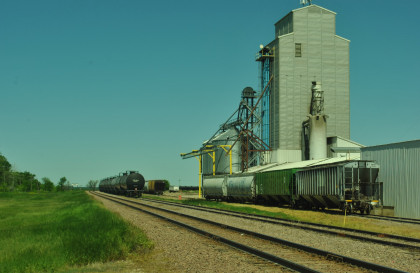 My photo location in Dwight. After a three hour wait, I first heard the train's horn then suddenly we were joined by six other photographers who appeared out of thin air. The train arrived at Dwight, North Dakota.