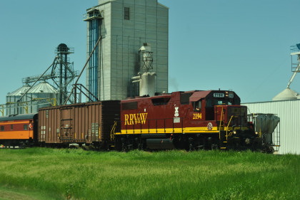 Catching the Employee Train.Bill and I filled up the rental car then drove out to Dwight to wait for the Red River Valley Employee Train. Soon Bart and Sarah Jennings joined us.