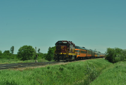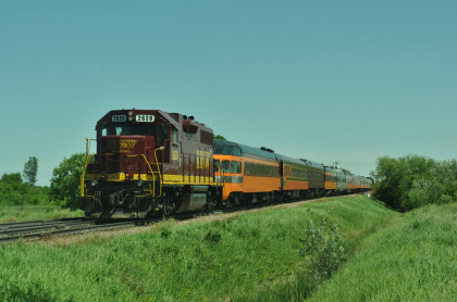 The Kindred station sign as we were reaching our farthest point north on this trip. I worked on this story in the baggage car and I let Bill use my Super Dome ticket on the return trip. My mother and Elizabeth kept me updated on game three of the Stanley Cup with Jake Guentzel scoring the only goal of the first period. A special thank you to the entire Friends of the Milwaukee Road 261 and the Red River Valley Railroad for two days of excellent train rides and a great chase yesterday. This is why I am a lifetime member of this organization.